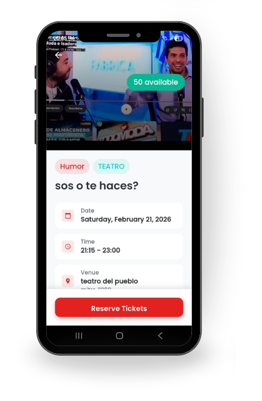 ¿Te imaginas recibir en tu celular alertas exclusivas de entradas gratuitas para tus espectáculos favoritos? Dejá de soñar y empezá a vivir la experiencia: con Free Tickets®, el acceso al entretenimiento que amás está a solo un click de distancia. Sin suscripciones ocultas ni letras pequeñas; sólo descarga la app, registrate y preparate para disfrutar de los mejores eventos de la ciudad sin gastar un solo centavo. ¡Tu próximo gran show te está esperando gratis!